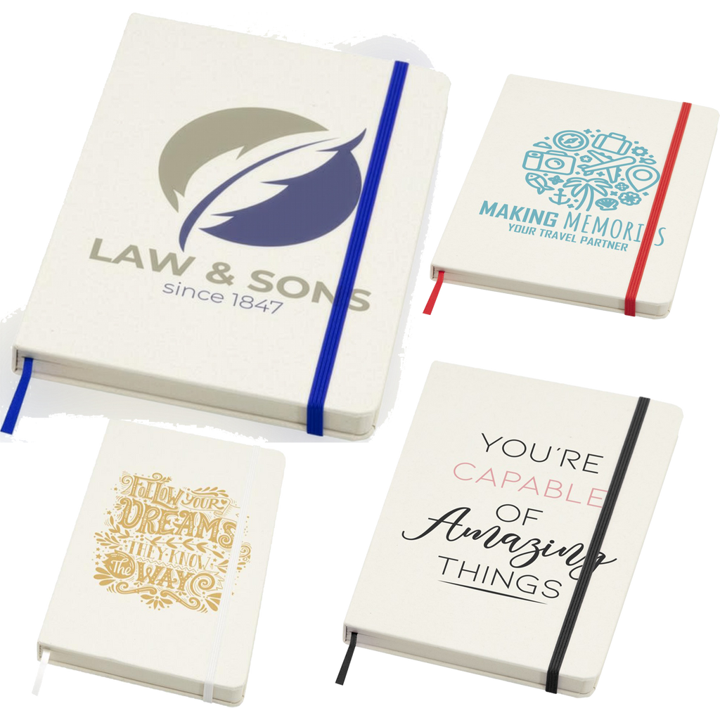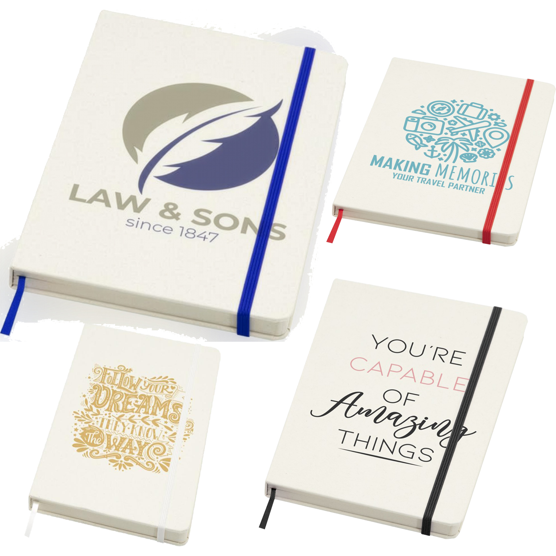 Elevate your note-taking with these Branded Bass A5 recycled hard cover notebooks—a sustainable choice that doesn't compromise on quality.