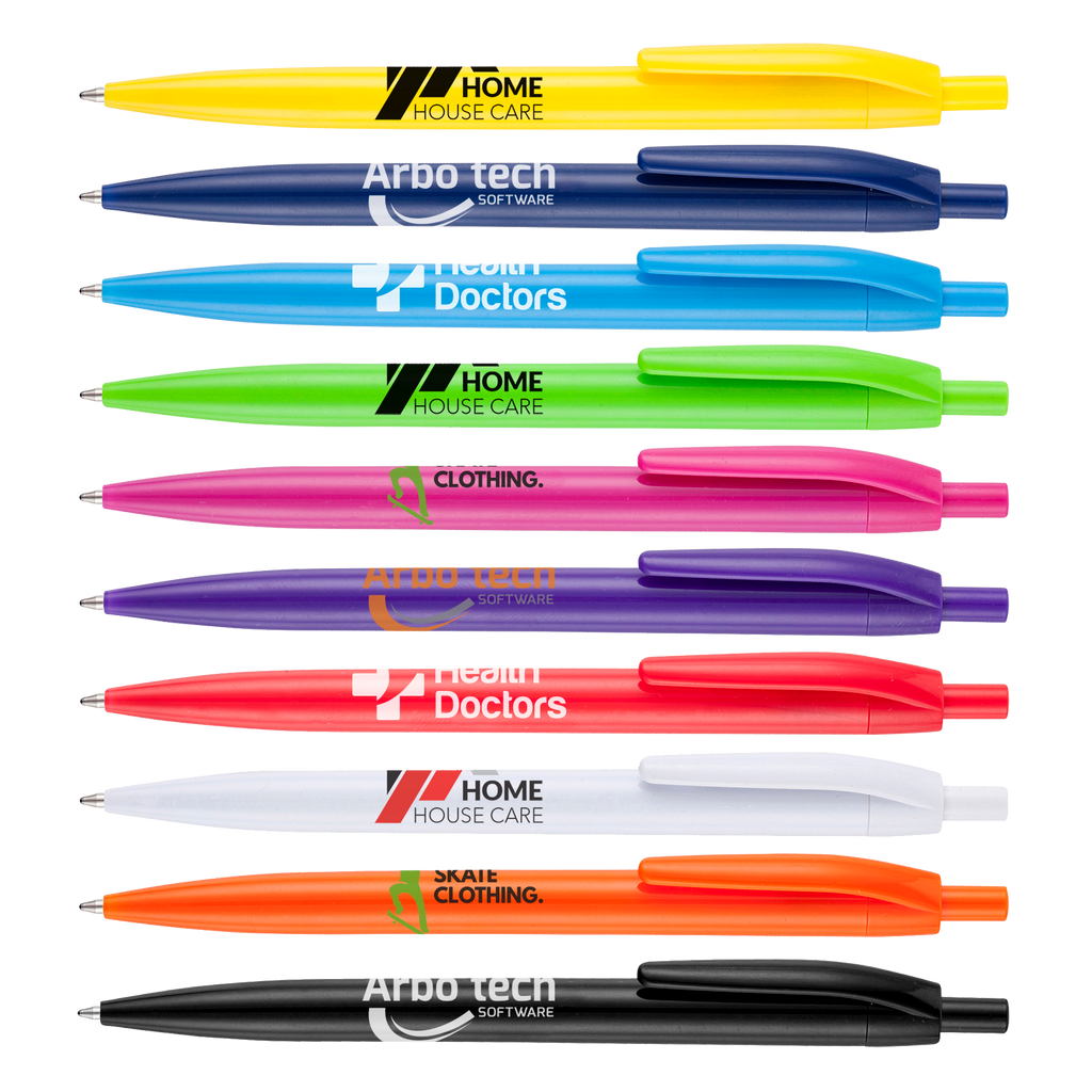 Grab a bargain with these low cost click action printed pen coming in a wide range of vibrant solid colours.