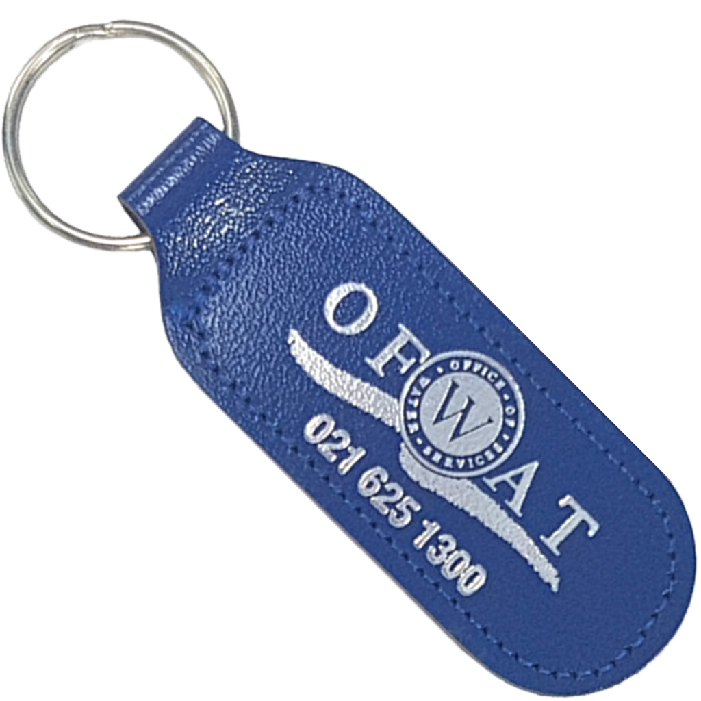 Elevate your brand with these striking oblong recycled leather key rings—the sustainable choice that doesn't compromise on quality.