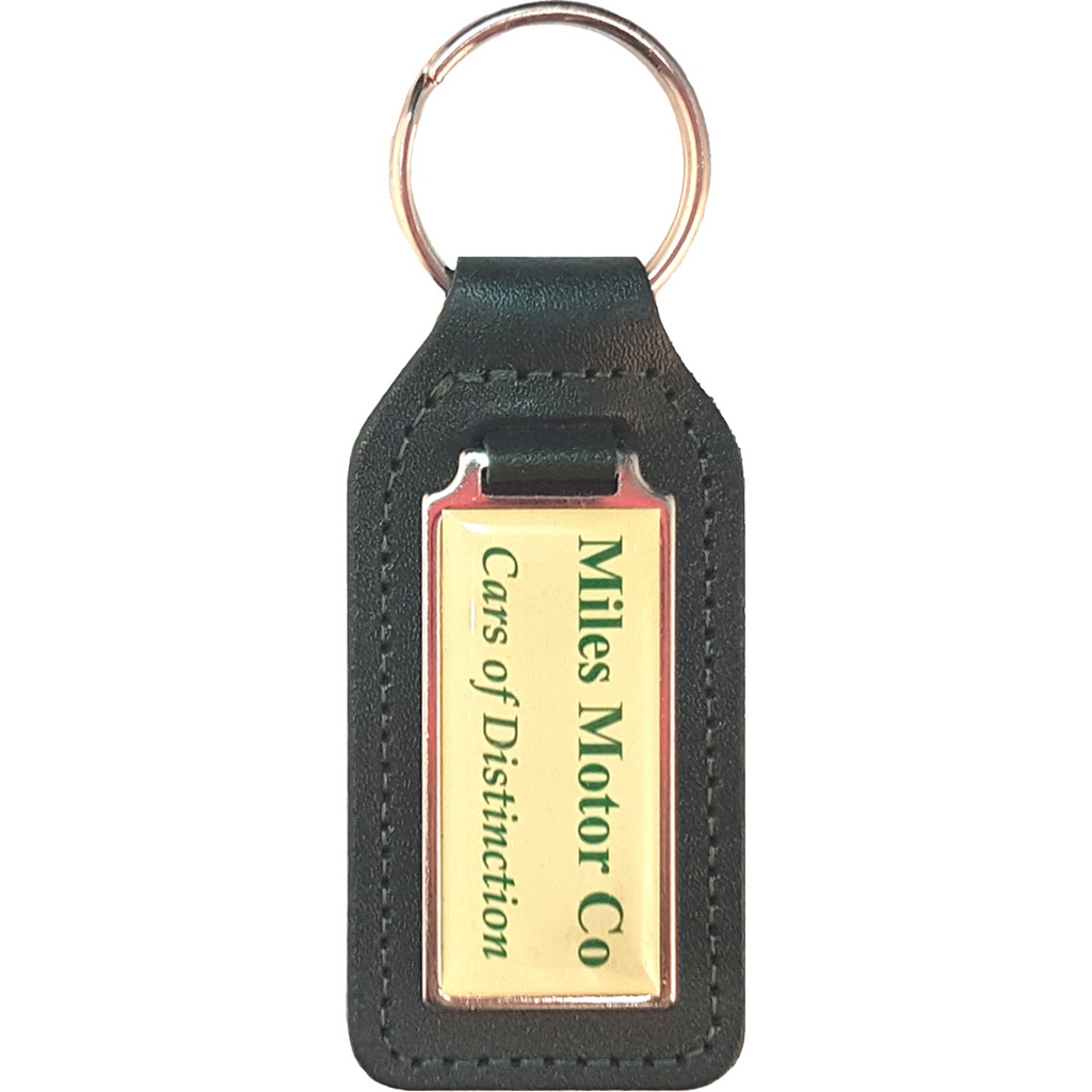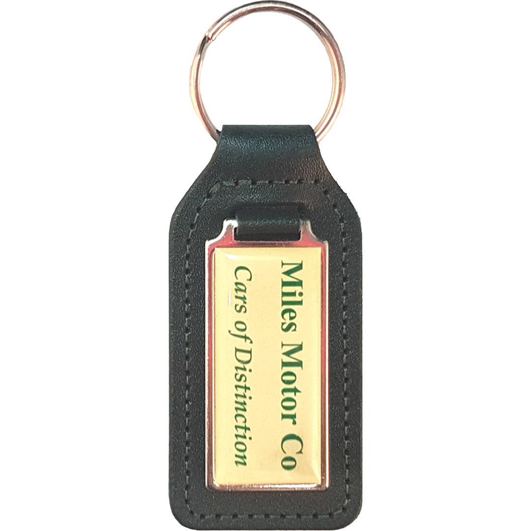 Elevate your brand with this premium recycled leather keyfob, featuring a striking domed medallion perfect for custom decals.