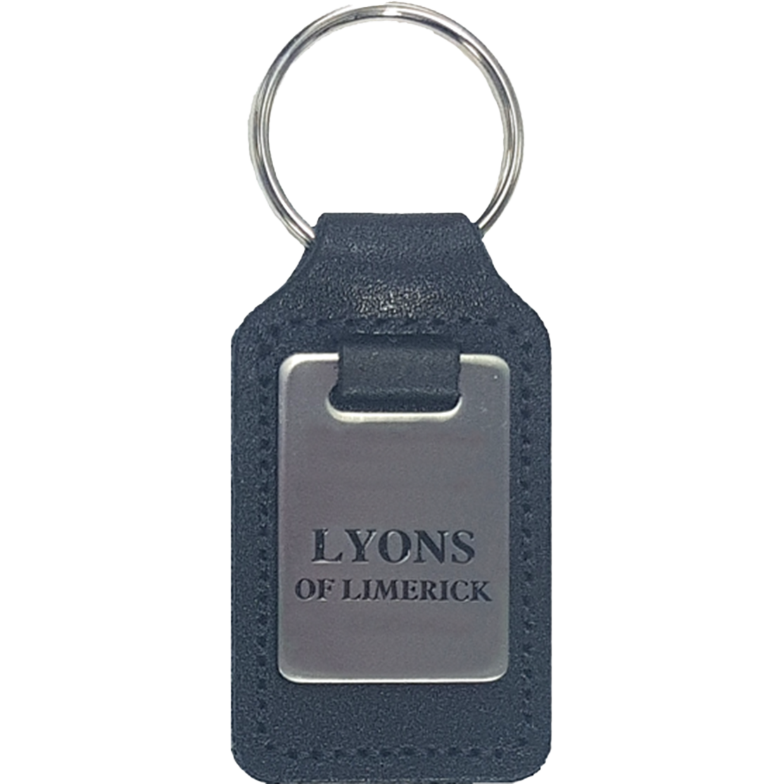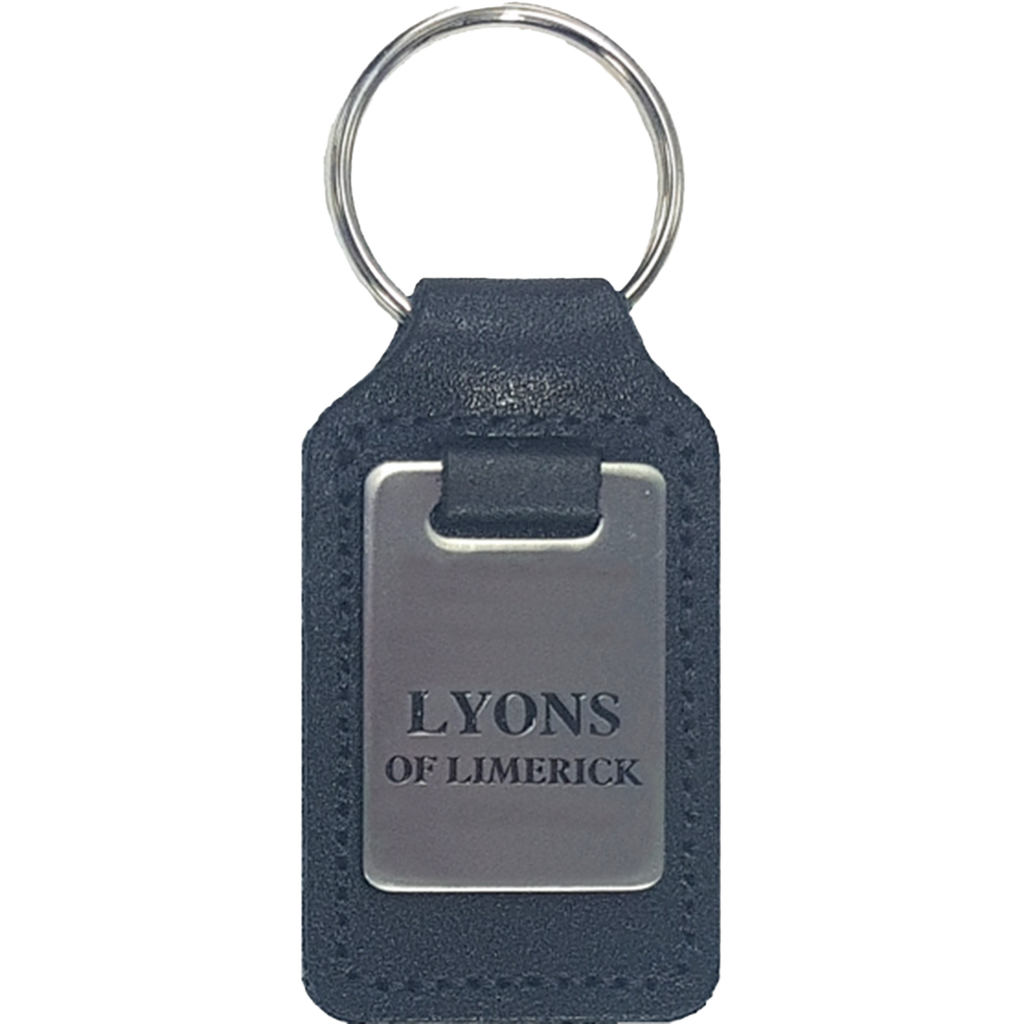 Square Shaped Real Leather Keyfob with Steel Medallion