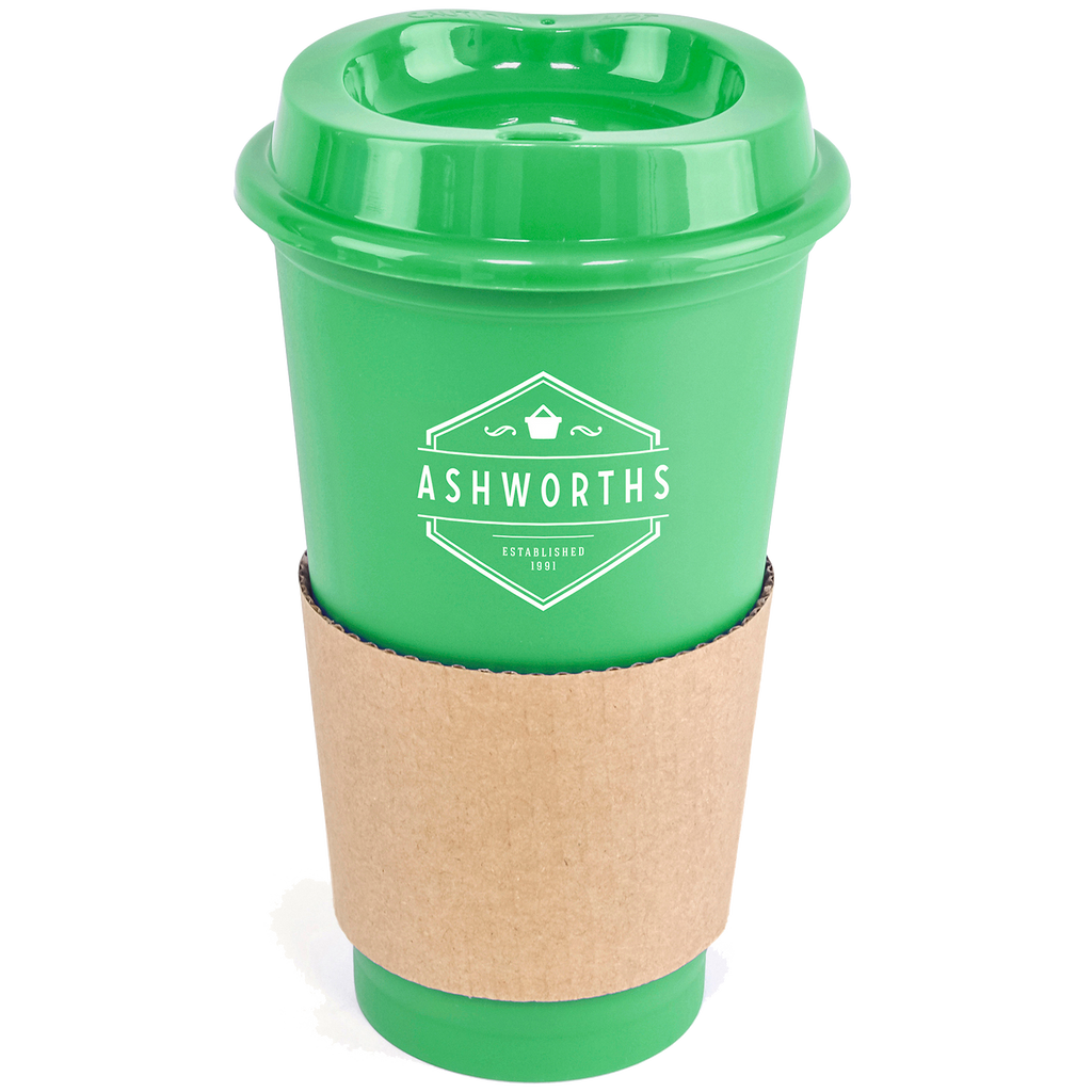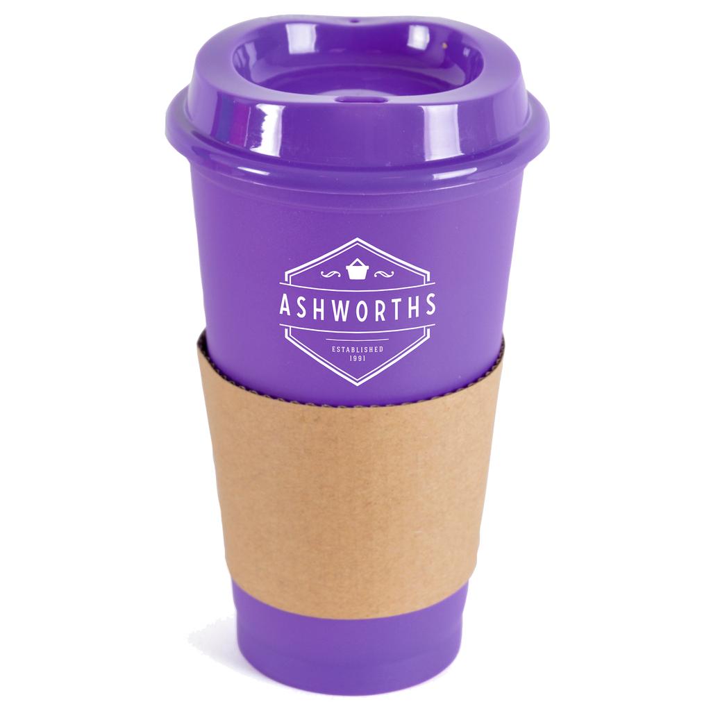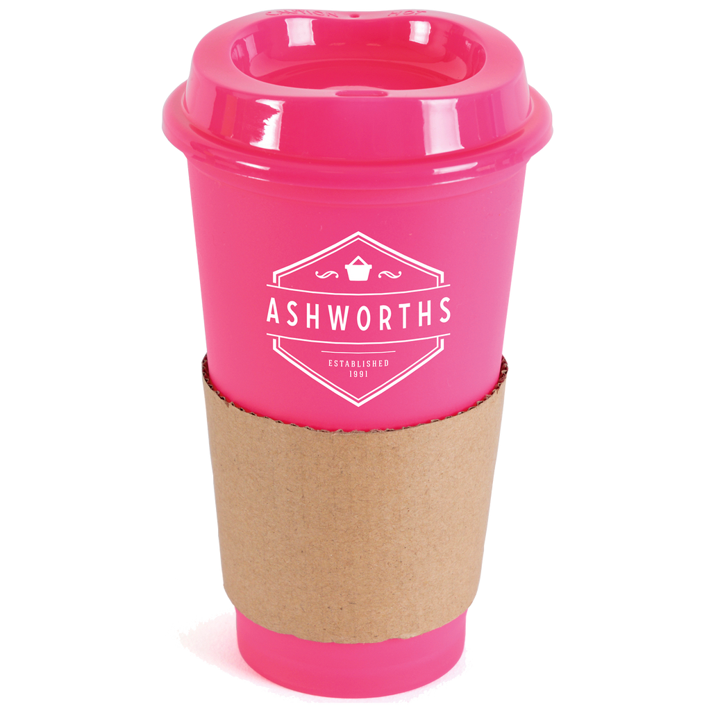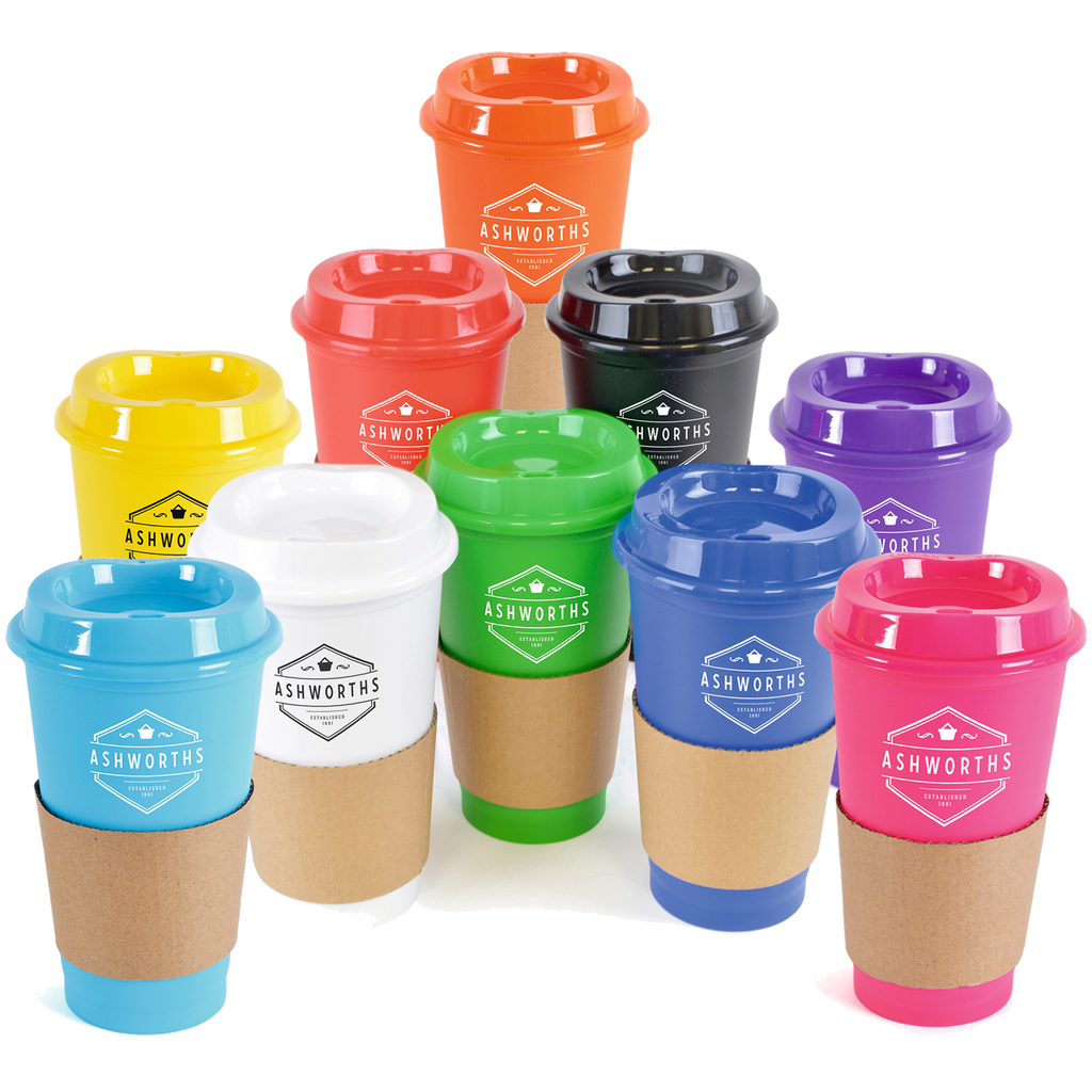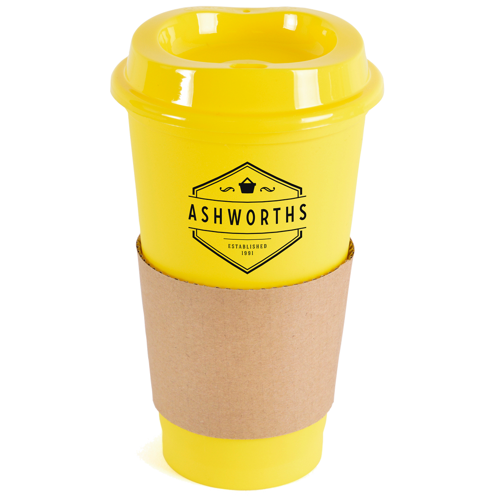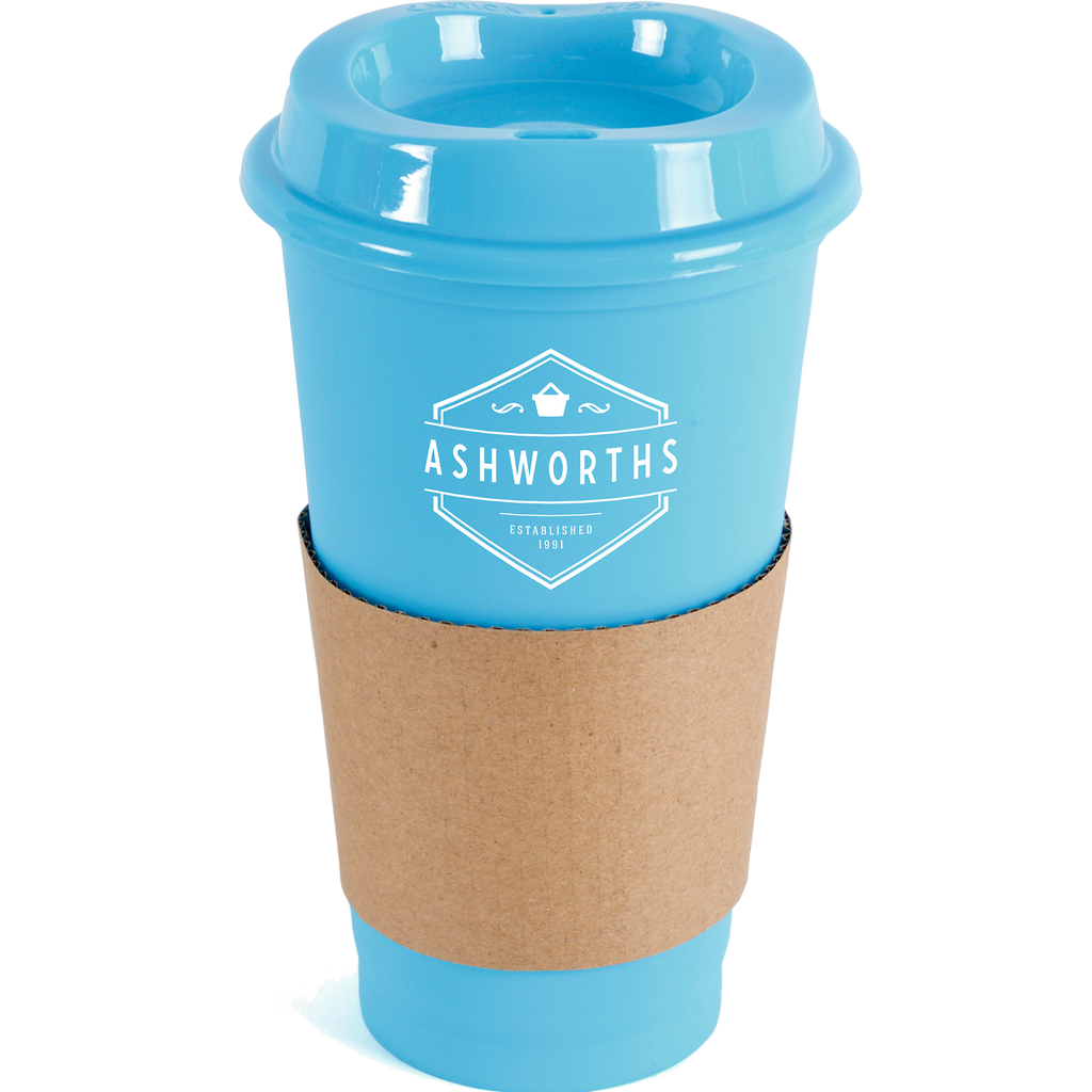Portable 500ml coffee mug crafted from durable single-walled polypropylene with a coordinating coloured lid.