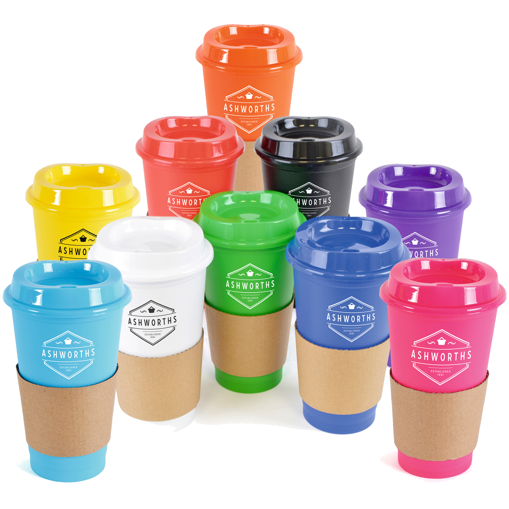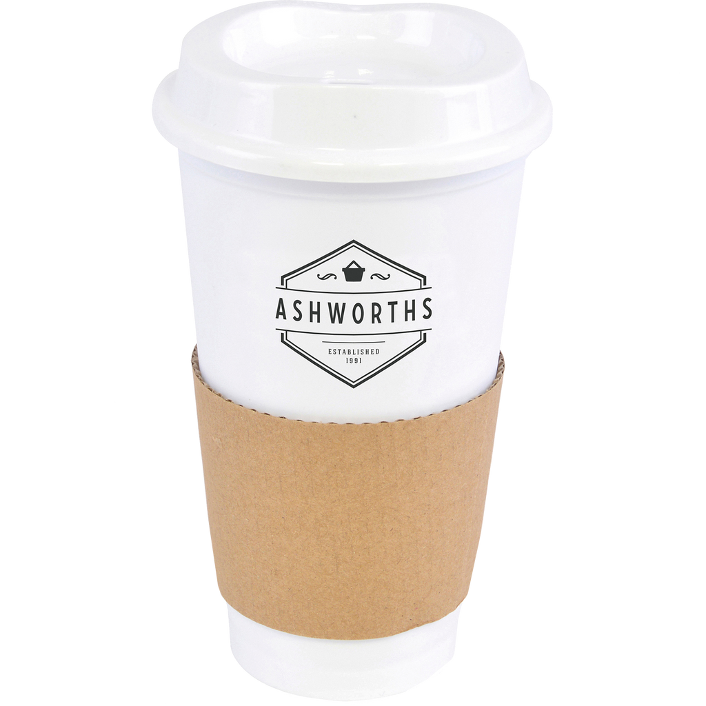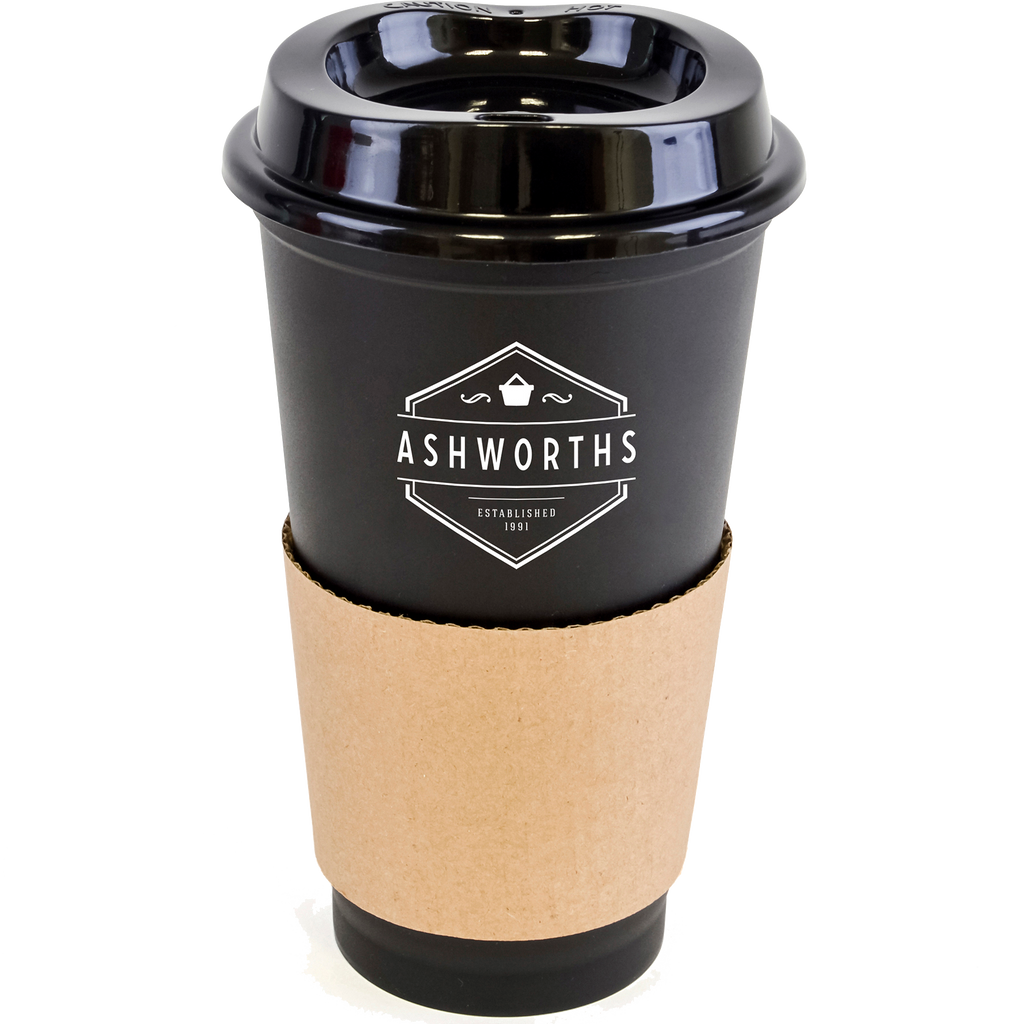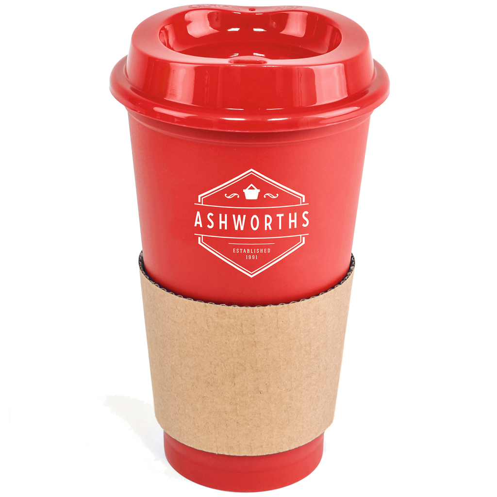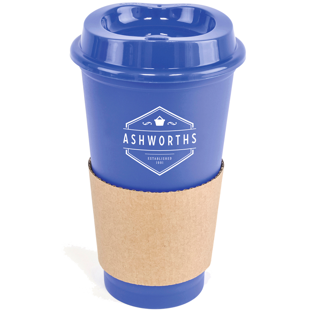 Portable 500ml coffee mug crafted from durable single-walled polypropylene with a coordinating coloured lid.