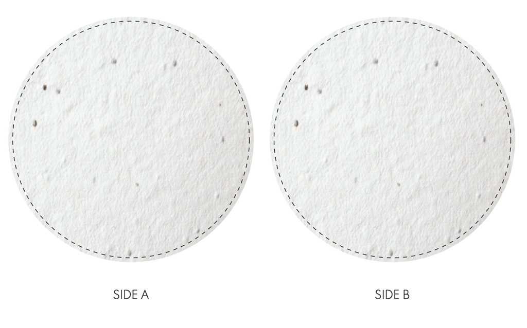 Seed paper is a natural product and has some absorbent properties. This means that colour may not appear as vibrant when compared with other medium. As the surface is uneven, artwork should NOT include a solid flood of colour or complex photographic images as blank spots may appear either side of the seeds which are in the paper.