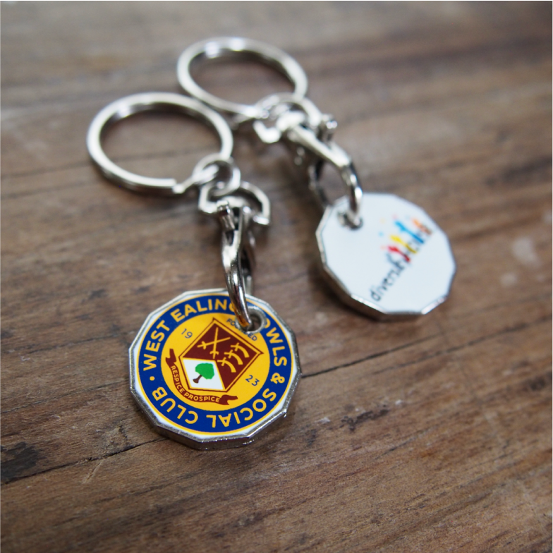 A practical addition to any shopping trip, personalised, branded supermarket trolley coins are found on keyrings throughout the UK.