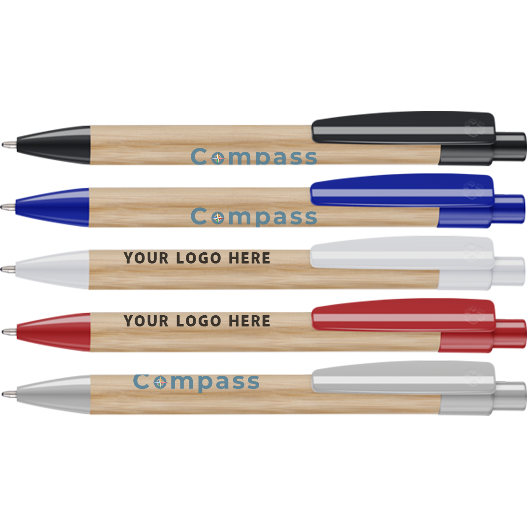 The Panda Bamboo Ballpen offers a stylish and sustainable writing experience with its bamboo barrel paired with a recycled plastic clip and nosecone.
